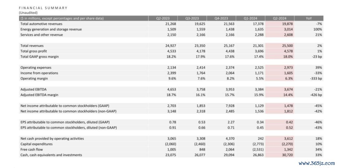 北京时间7月24日,特斯拉发布了2024年第二季度财报。报告显示,特斯拉第二季度营收为255亿美元,同比增长2%,创下历史纪录,归属于普通股股东的净利润为14.78亿美元,同比下滑45%。